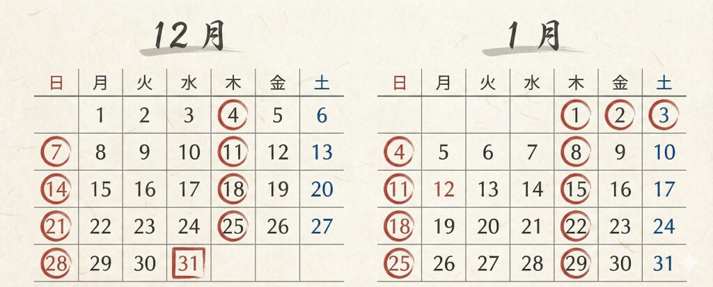 2025年12月31日(水)午後 ~ 2026年1月4日(日)